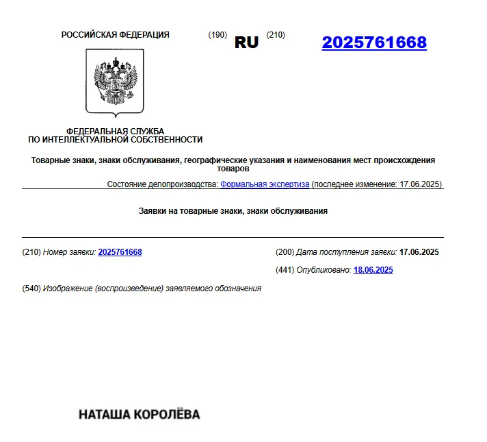 Наташа Королёва: товарные знаки и новые заявки для развития бизнеса