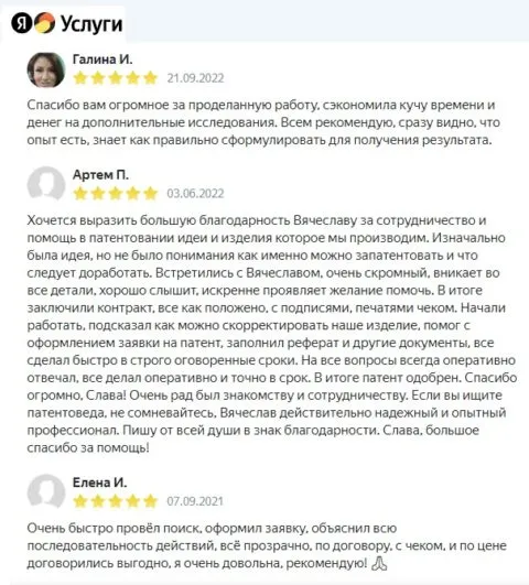 Проведение патентного исследования Патентные исследования на патентную чистоту Оценка стоимости интеллектуальной собственности Оценка патента на изобретение, полезную модель, промышленный образец Патентно-информационный поиск Оценка стоимости товарного знака Разработка и создание нематериального актива для компании (НМА) Оценка программно-аппаратного комплекса, программ ЭВМ -
