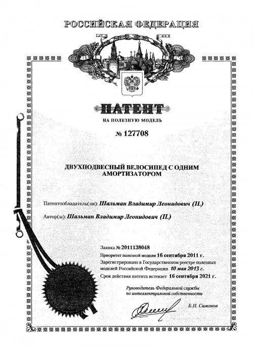 В части экономического эффекта следует отметить, что исключение из конструкции тяжелых, громоздких и дорогостоящих амортизаторов позволит снизить стоимость -велосипеда на 25-30% (стоимость простого амортизатора составляет 324руб., а гидравлического, пневматического или пружинно-гидравлического, которыми комплектуются выпускаемые велосипеды этого же типа, достигают от 3930 до 31050руб. (данные получены из сети Интернета Http//www.velopiter.ru/cat/eloparts/0/33/1.htm.http://mib-sob-suspension/forks) Одновременно с исключением из конструкции указанных дорогостоящих амортизаторов исключается использование до десяти шарнирных соединений, устанавливаемых на двухподвесных велосипедов последних выпусков.