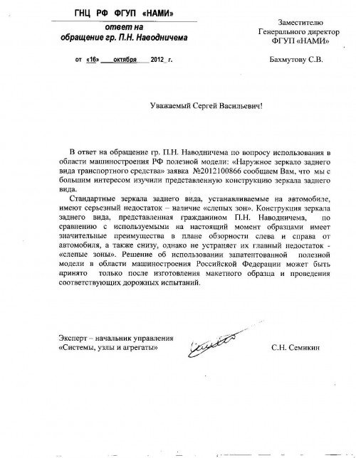 Задачей заявляемой полезной модели является повышение обзорности при эксплуатации зеркала.