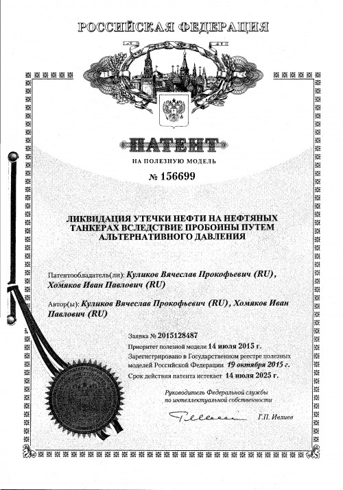 Ликвидация утечки нефти на нефтяных танкерах вследствие пробоины путем альтернативного давления