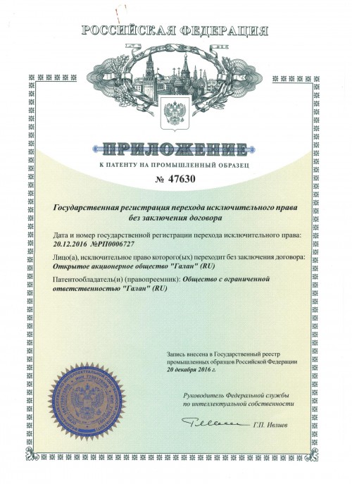 Вид объекта: Промышленный образец