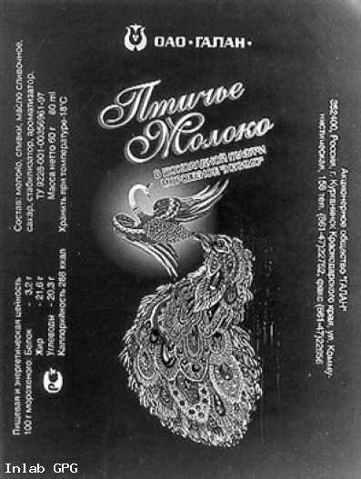 На упаковке размещена композиция, состоящей из боковых сопроводительных надписей и центрального рисунка, над которым расположены шрифтовые надписи ТЗ производителя, название "Птичье Молоко" и надпись "в шоколадной глазури мороженое "эскимо".