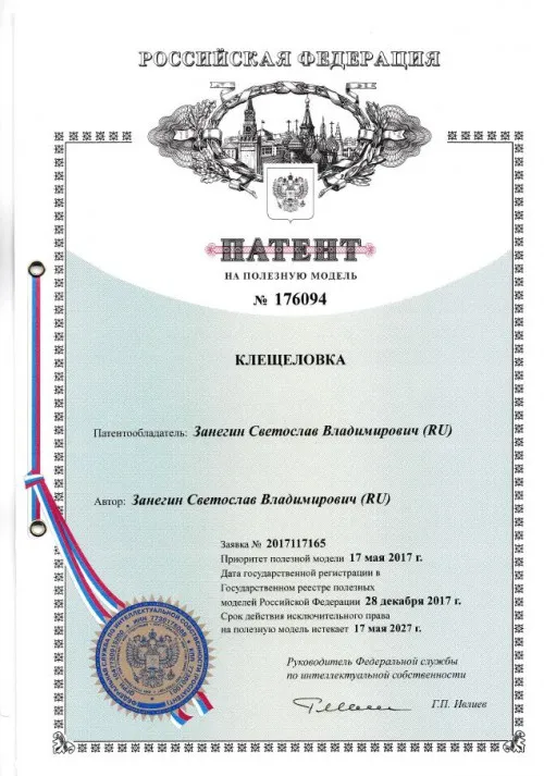 5. Клещеловка по п. 1, отличающаяся тем, что древко имеет длину 200-250 см.
